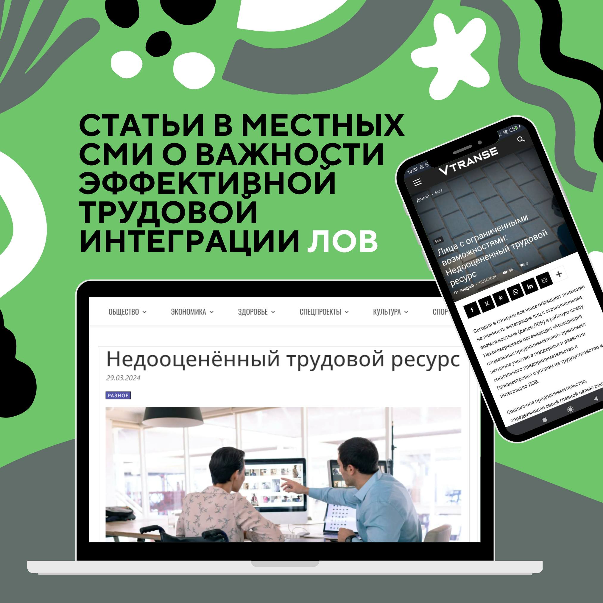 Мы рады отметить, что важность трудовой интеграции лиц с ограниченными возможностями обсуждается все активнее. Недавно в газете «Приднестровье» и на интернет-портале «Vtranse.life» вышли статьи, посвященные теме трудоустройства и интеграции людей с ограниченными возможностями, освещающие работу нашей организации.