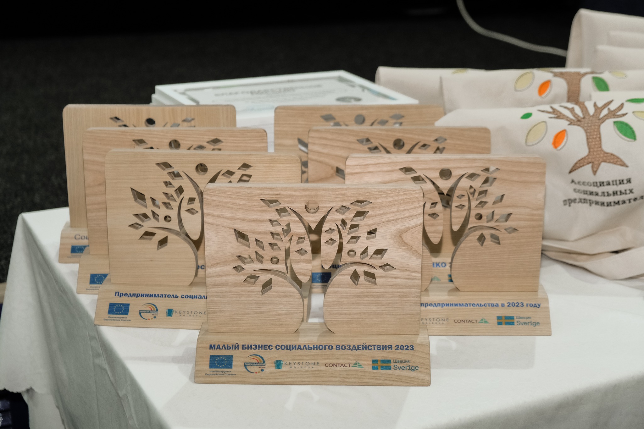 Каждый элемент этих наград был изготовлен с любовью и вдохновением, символизируя крепкие корни и плодородные ветви социального предпринимательства, которые поддерживают наше сообщество. Эти произведения искусства не просто украшают событие, они напоминают нам о силе совместного труда и инновационного подхода к бизнесу, который стремится к устойчивому развитию и социальному благополучию.